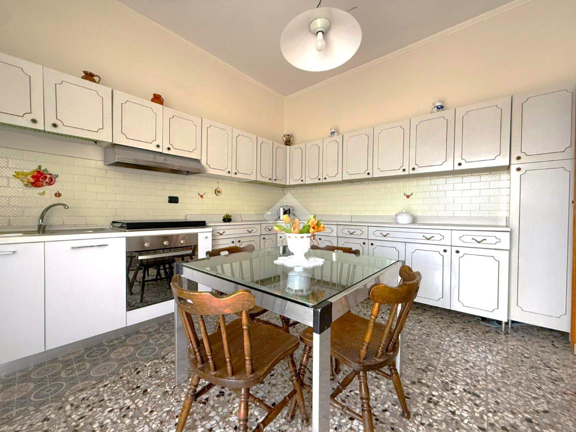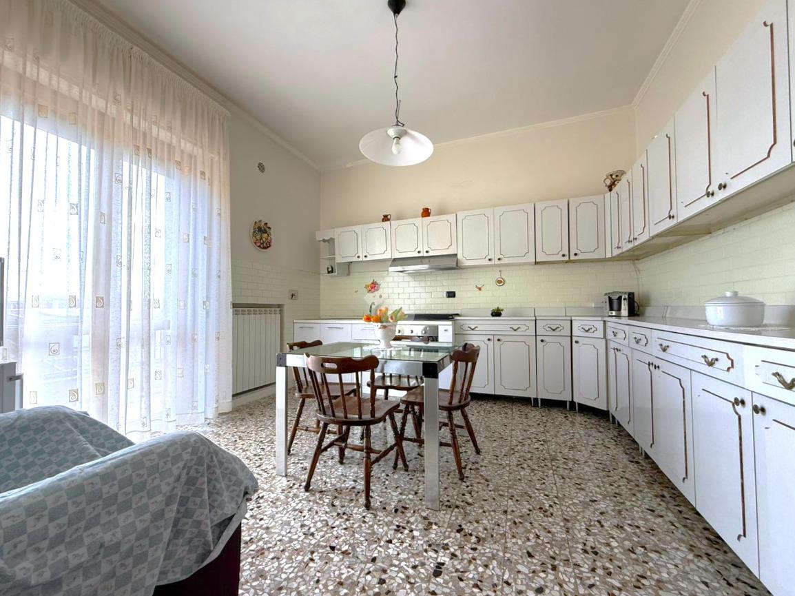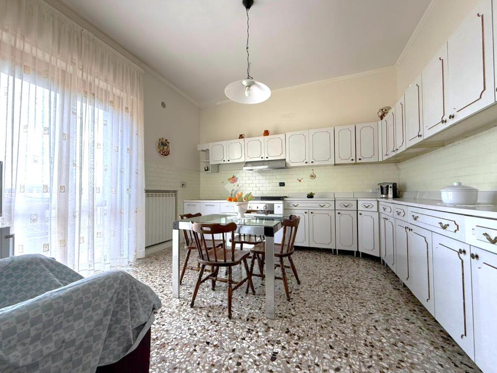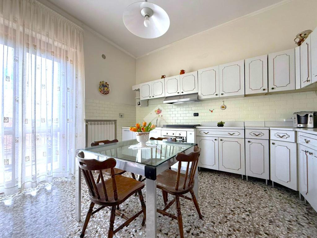 La cucina abitabile, con accesso diretto al balcone, offre uno spazio funzionale per la vita quotidiana.