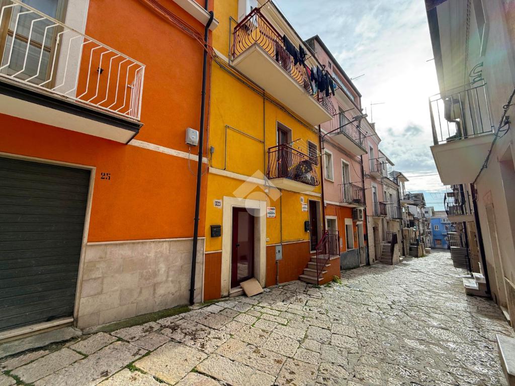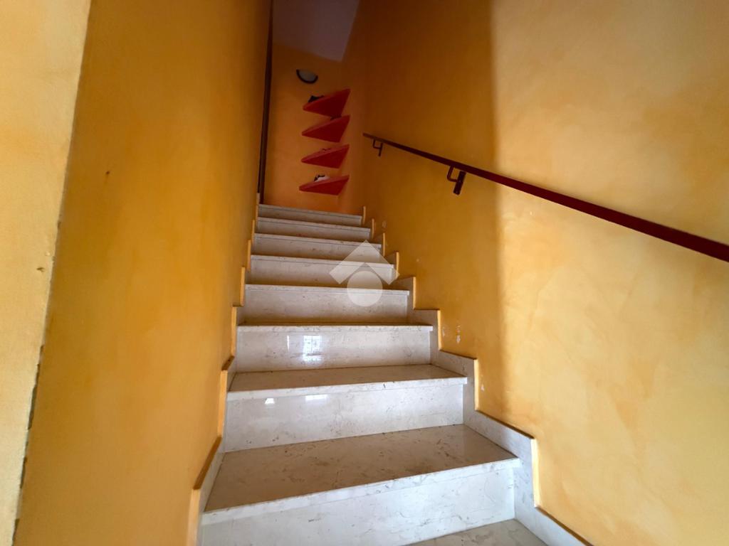 Tramite scala interna si raggiunge il primo piano, dove è presente un secondo soggiorno completo di cucina è un piacevole affaccio sul balcone con vista sulla strada principale.