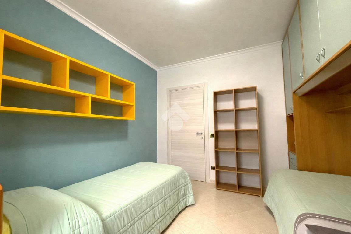 VIA REGGIO CALABRIA: l'immobile si trova al secondo piano di un edificio ben posizionato, ed è composto da un ampio ambiente unico che ospita l'angolo cucina e la zona giorno, creando un'area funzionale e luminosa. All'ingresso, si accede direttamente a questa zona open space, che permette una gestione fluida degli spazi. Un corridoio collega l'area giorno a vari locali di servizio: una lavanderia, una cameretta, una camera da letto e un bagno, offrendo comfort e praticità per un utilizzo quotidiano.