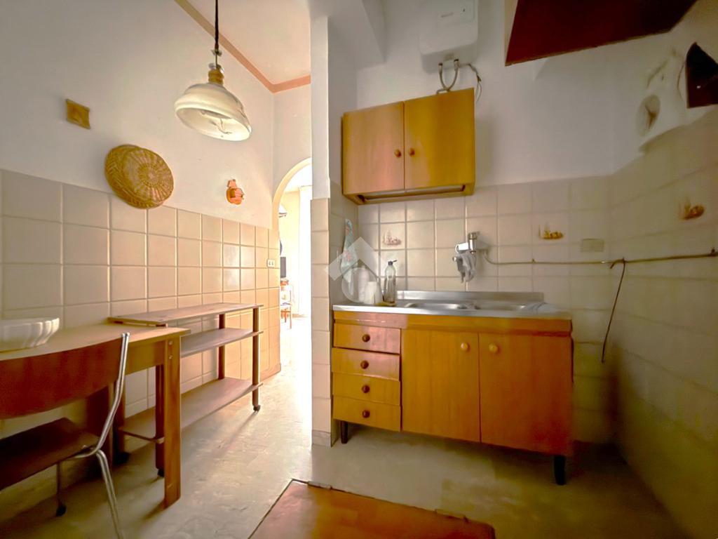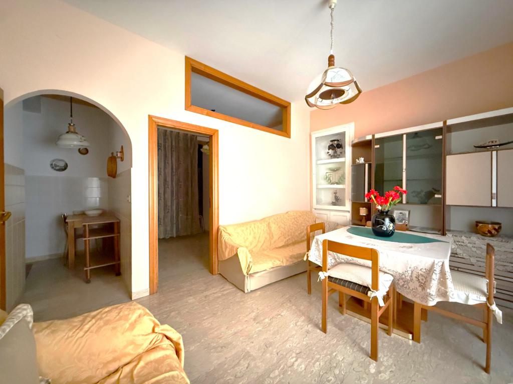 Al piano terra si sviluppa la prima unità abitativa composta da un accogliente soggiorno con cucinino, bagno e camera da letto, perfetta come zona giorno principale o come appartamento indipendente.